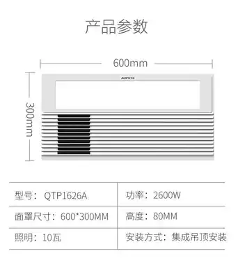 Apu heater bath integrated ceiling exhaust fan lighting integrated heater dressing room heating QTP1626A