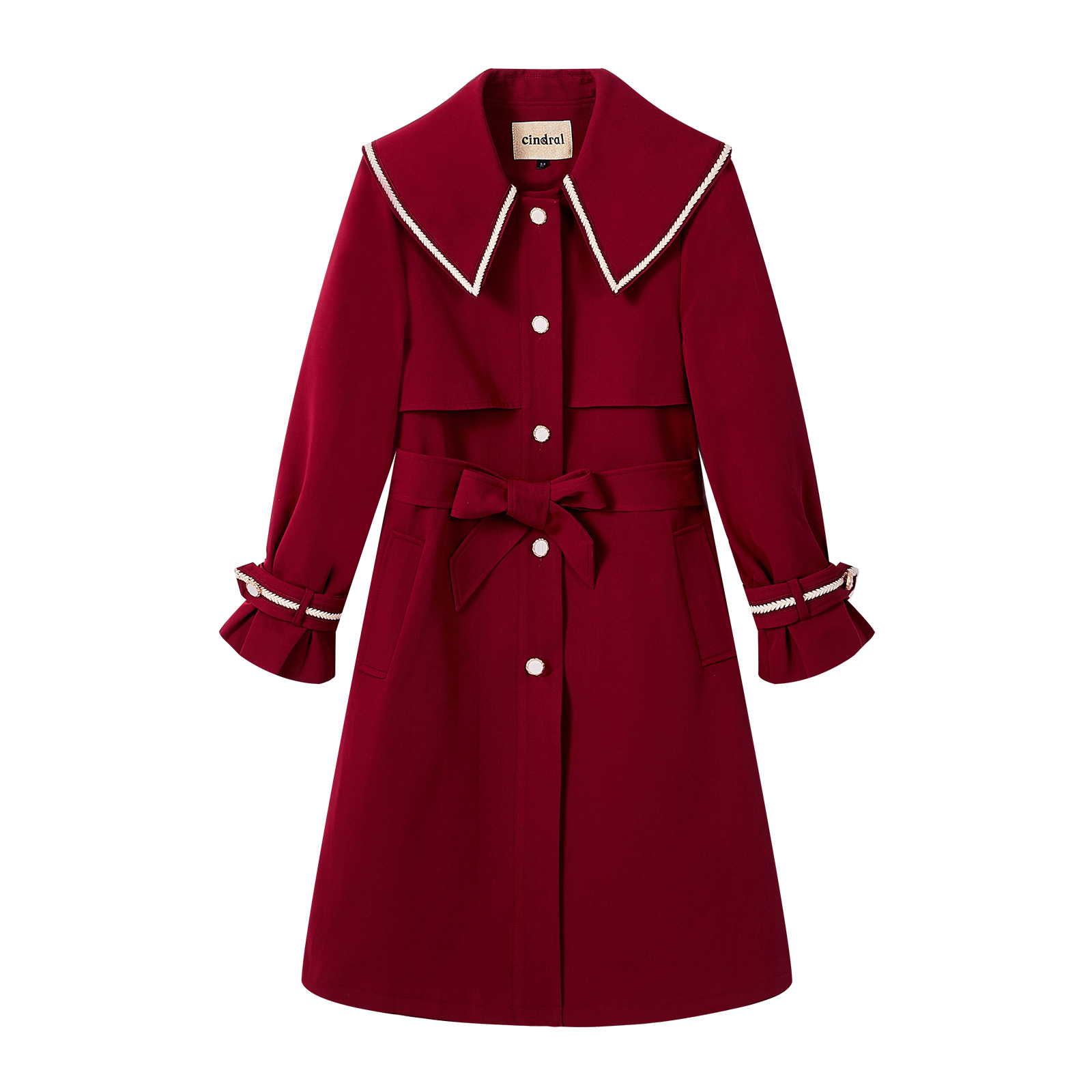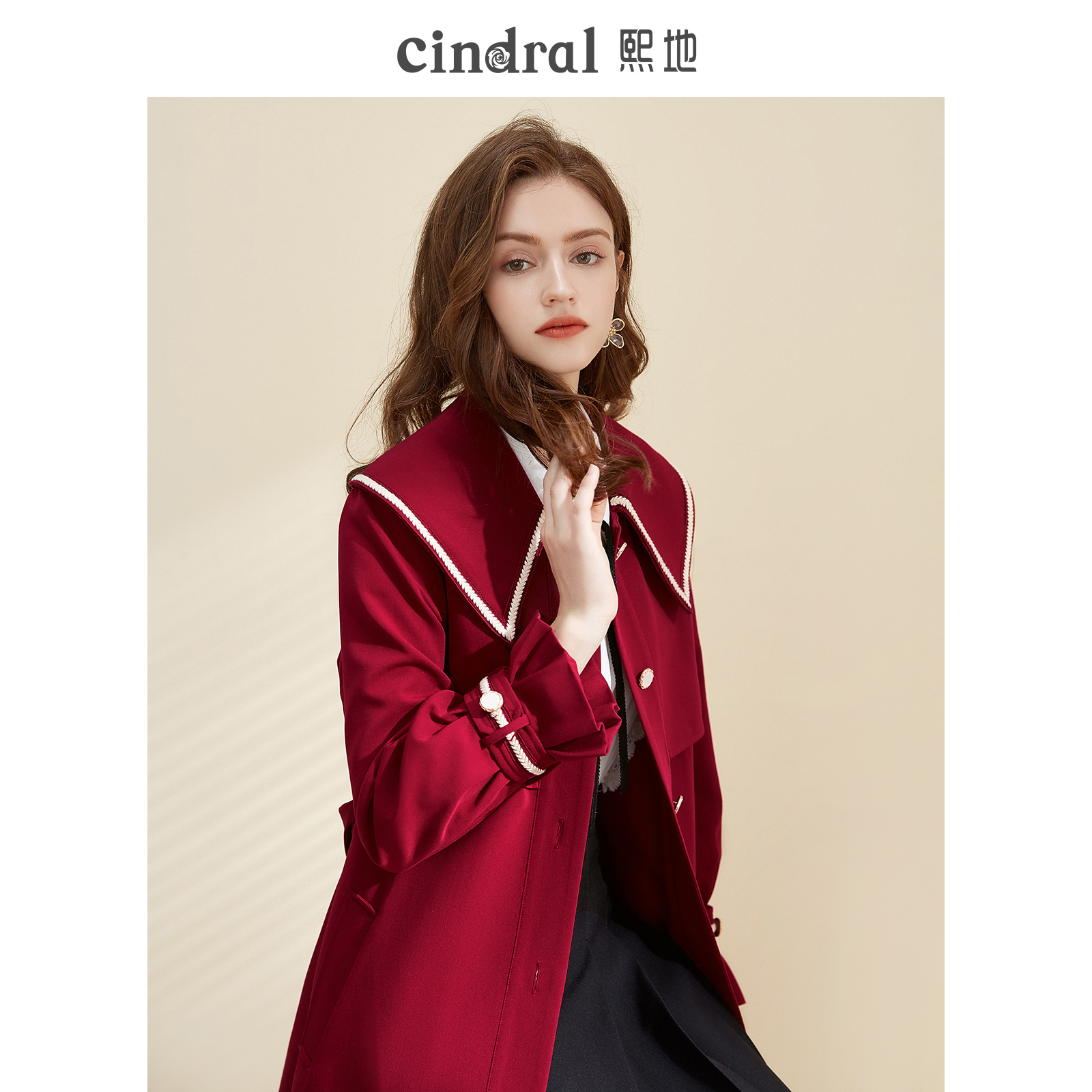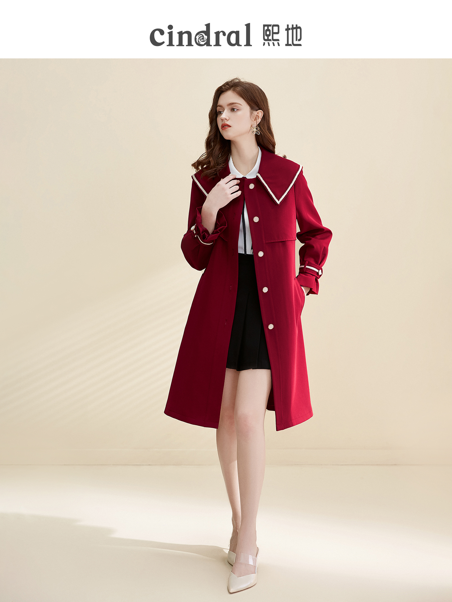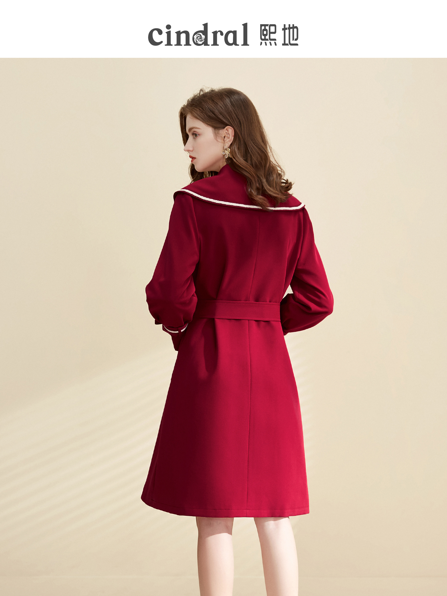 Xi's women's dress 2022 New spring dress Red Wind dress Women's medium long version Pop bursting with small taller coat