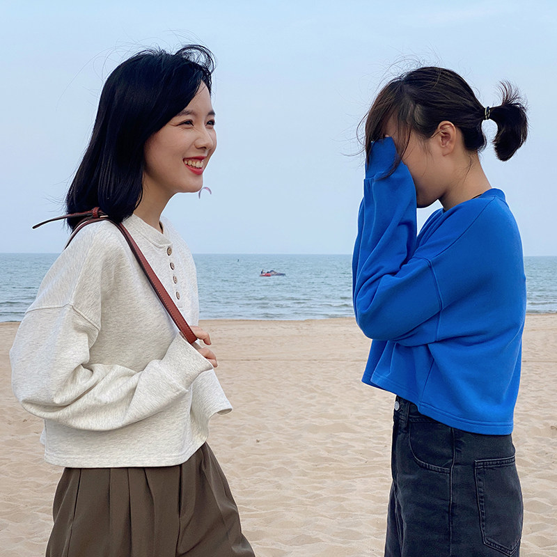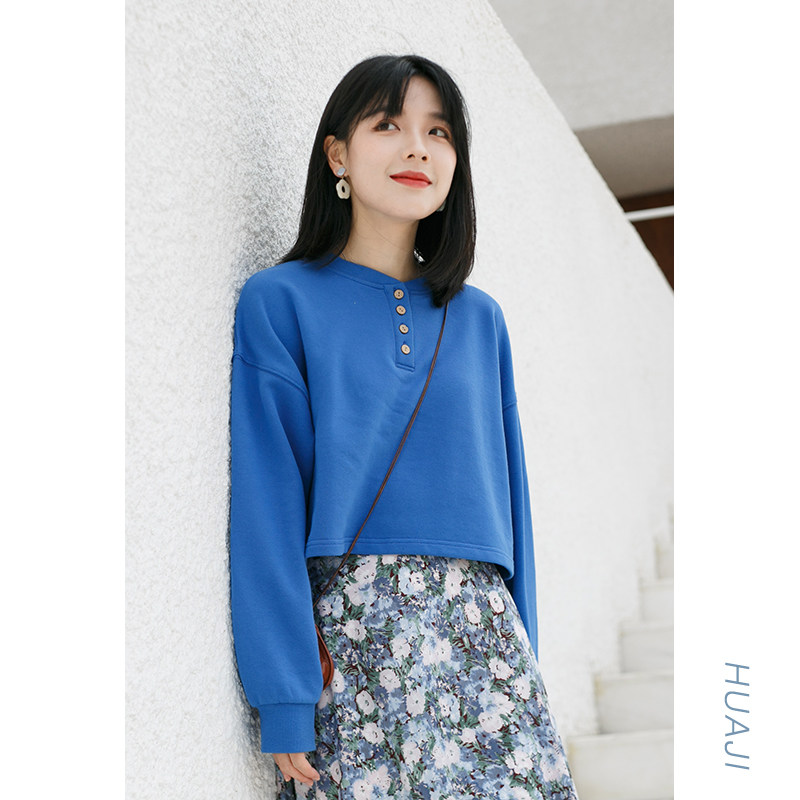 Flower gig A568 grey white Henry collar small and no cap loose small and short version of the women's 2022 new first spring