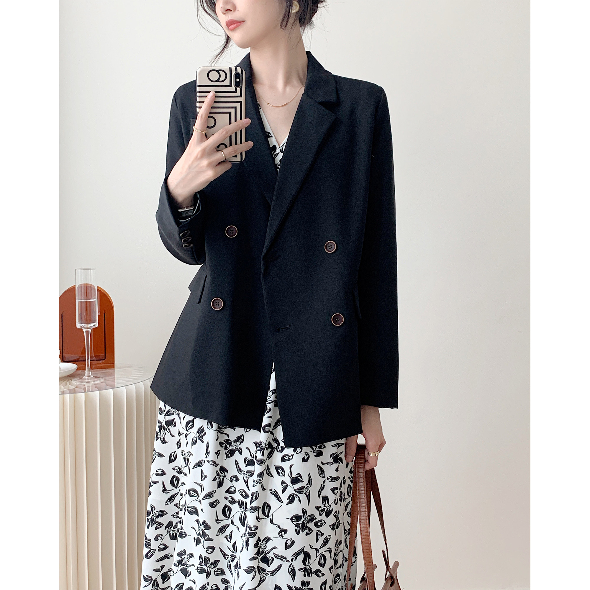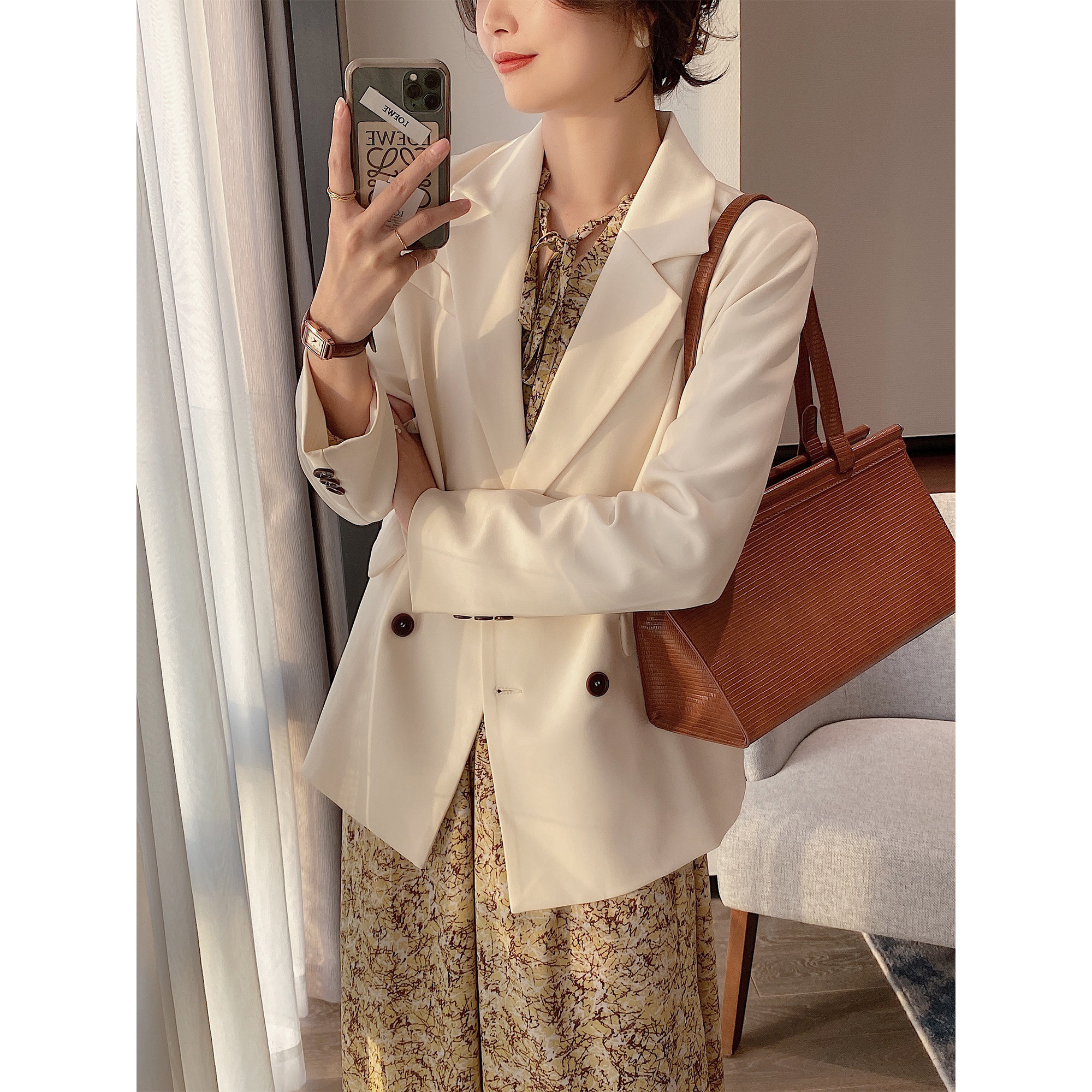 Full honey custom spring and autumn temperament foreign style casual niche milk white high-end sense suit jacket female retro small suit