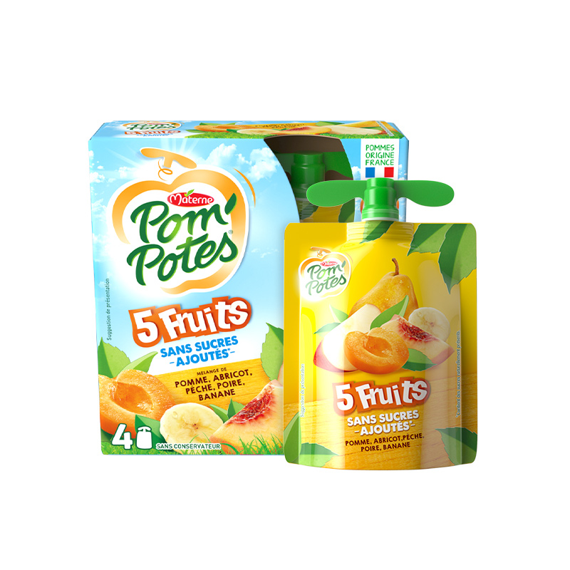 Pompotes method Youlac original clothing imported children Fruit mud Baby snacks apple peaches pear puree 90g * 4 bags