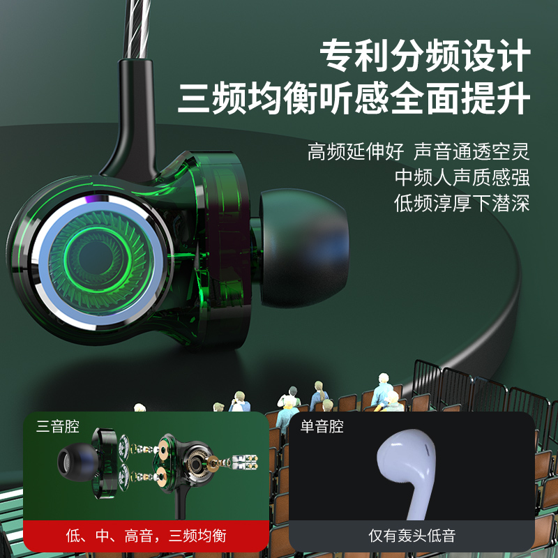 (For audiophiles)Green water ghost headphones wired in-ear high-quality game k song vocal monitoring High-fidelity HiFi noise reduction audiophiles six-unit six-core female poison distortion-free sound quality