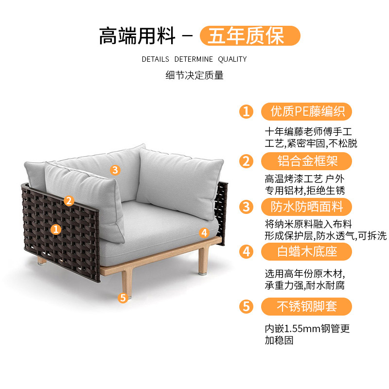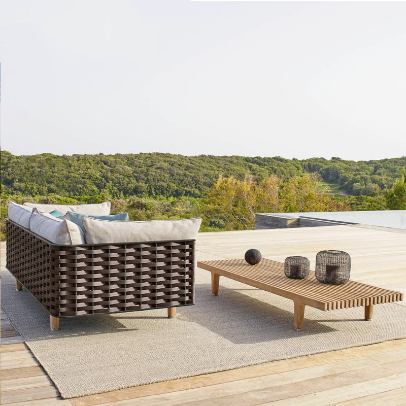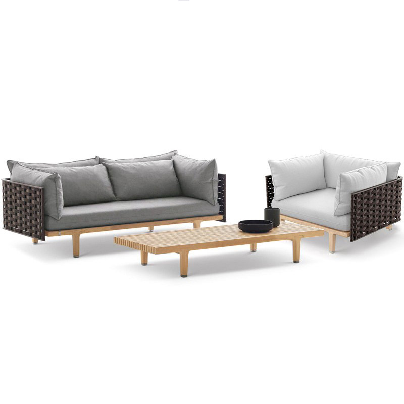 Nordic Ash Wood Sofa Outdoor Rattan Coffee Table Combination Courtyard Terrace Balcony Villa Hotel B&B Rattan Sofa