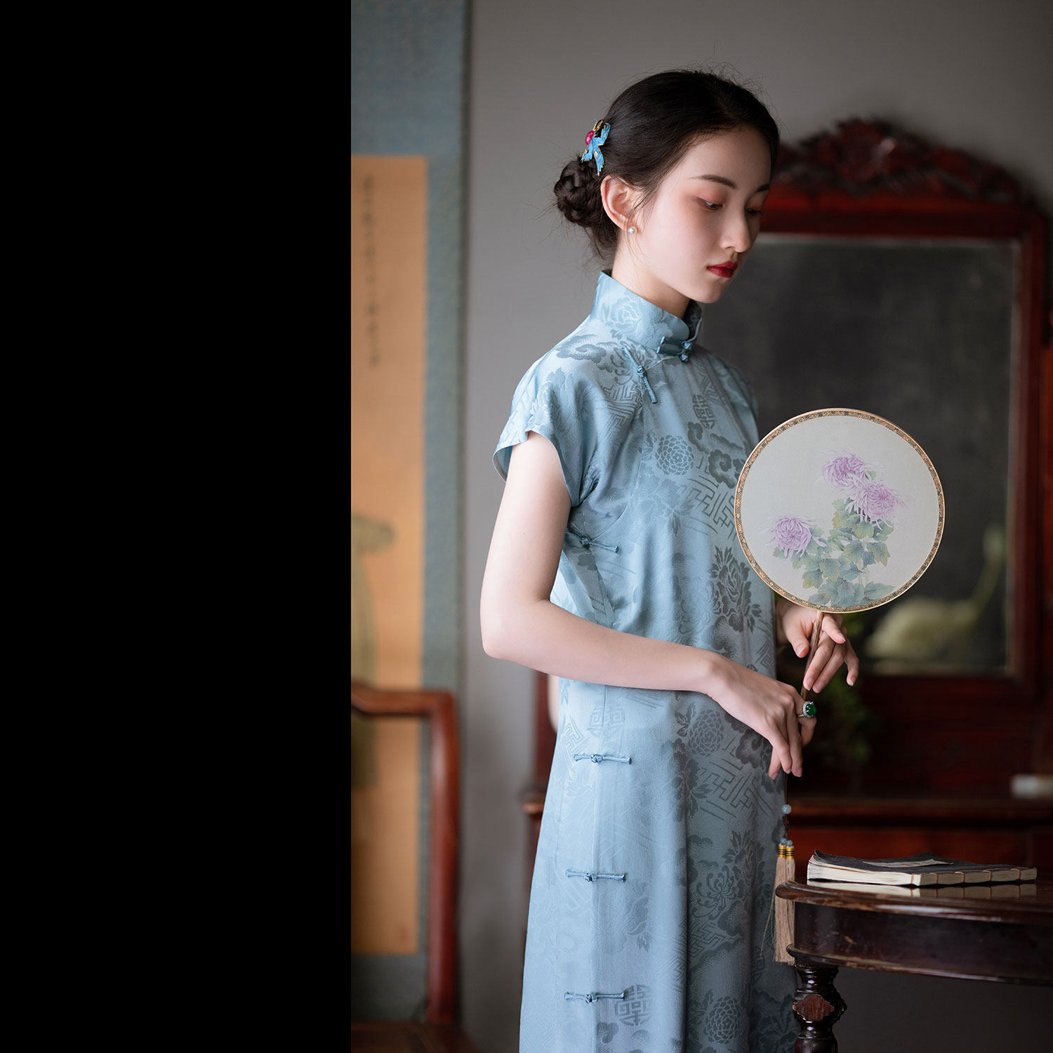Qing Young Young students with short sleeves full-blown skirt dress retro