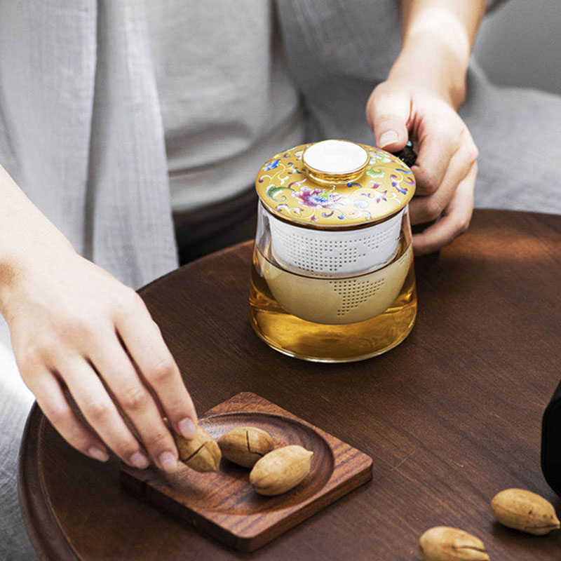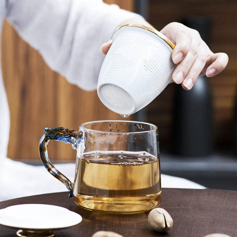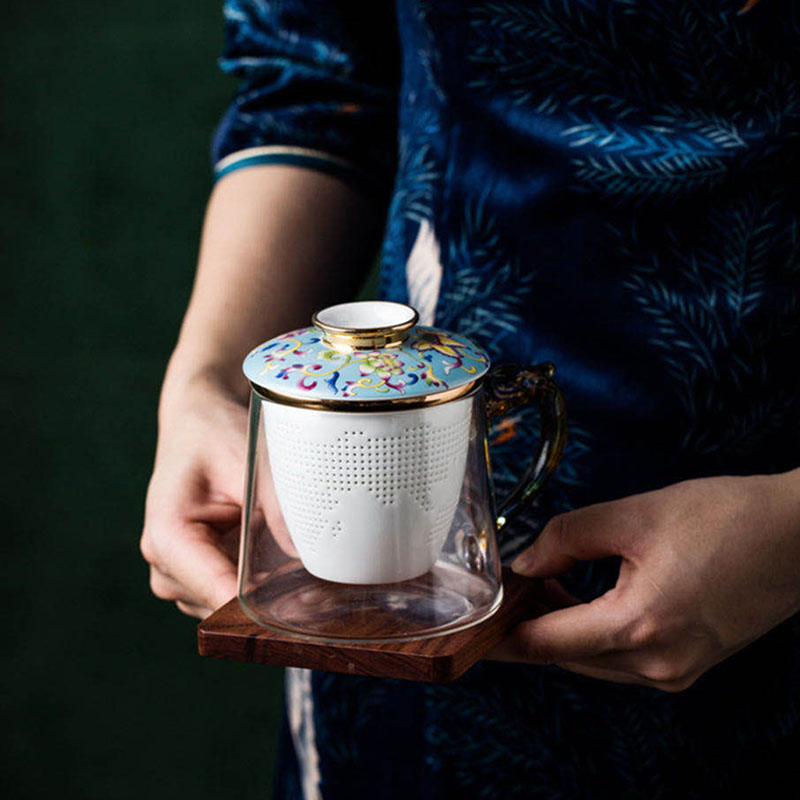 Zhizuo tea cup Tea water separation cup ins wind personal special female household Chinese water cup flower tea cup with handle