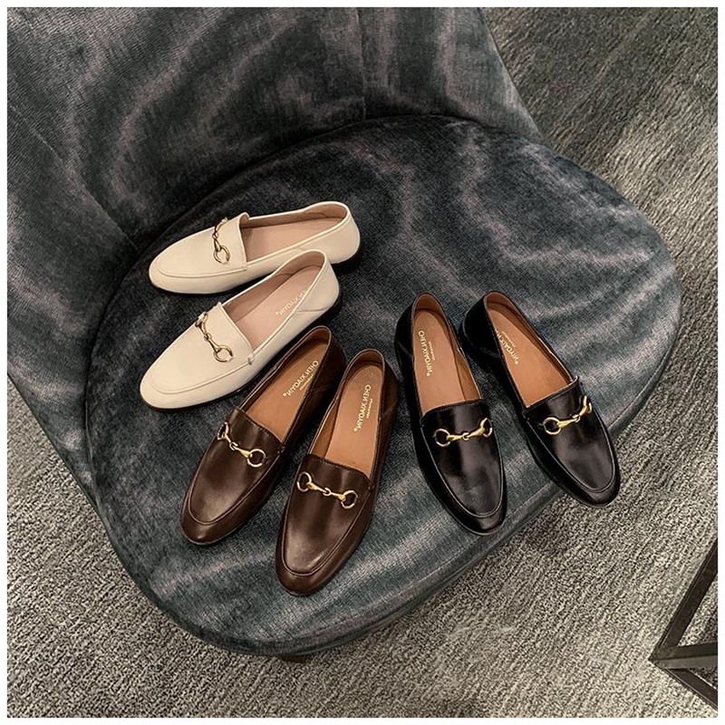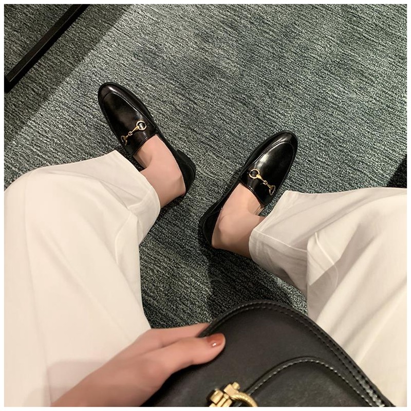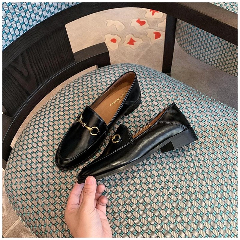 Coarse heel Single shoes 2022 Summer new genuine leather flat-bottomed Lefoe shoes Children 100 hitch a foot pedal Inn wind small leather shoes