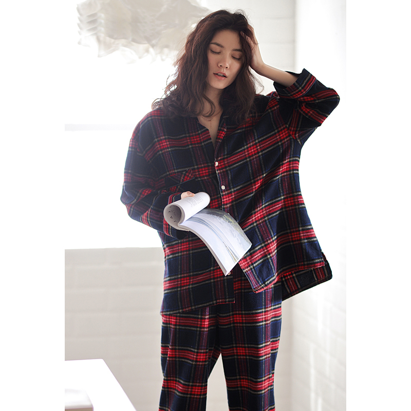 Shopkeeper's private model ~ classic plaid super foreign! Pajamas women spring and autumn cotton long sleeves casual can be worn outside the set