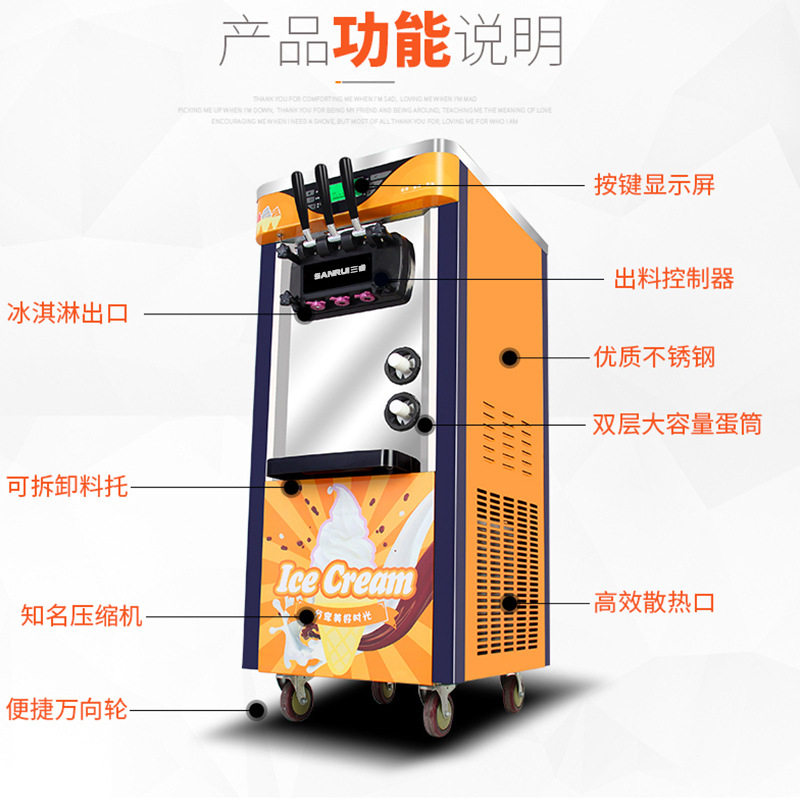 Three-wise ice cream machine Commercial vertical ice cream machine Soft ice cream machine Commercial sweet cylinder maker Direct sales