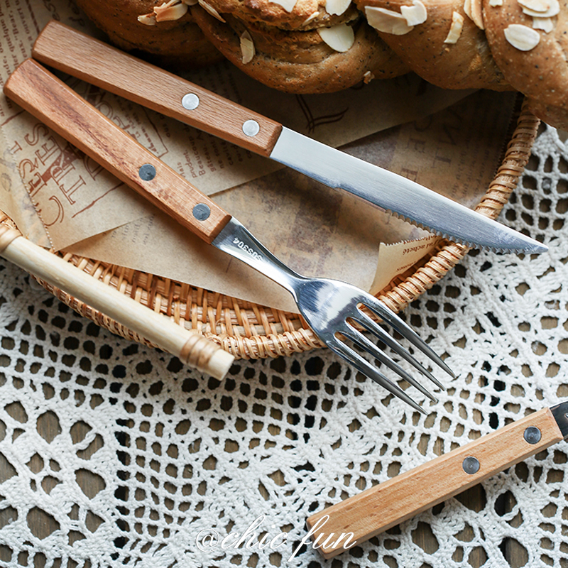 Clear Barn Welfare Chic Fun * Korea Wind Ins Retro Solid Wood Shank Knife Fork Spoon Suit Cake Knife Fork Western Meal