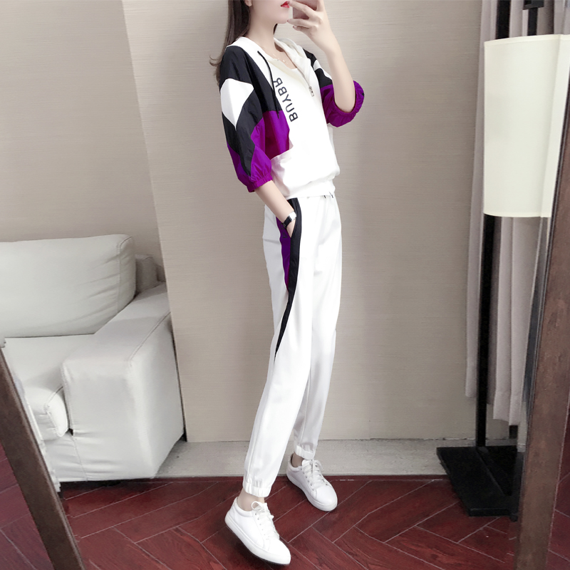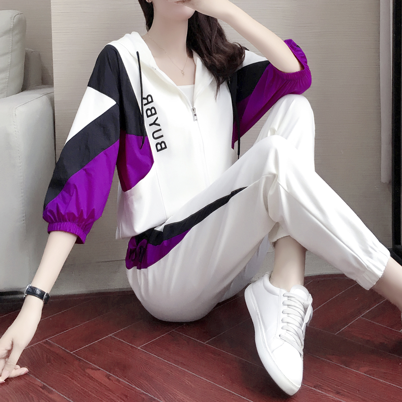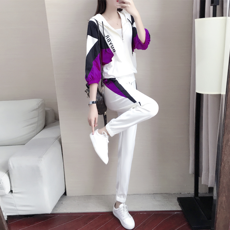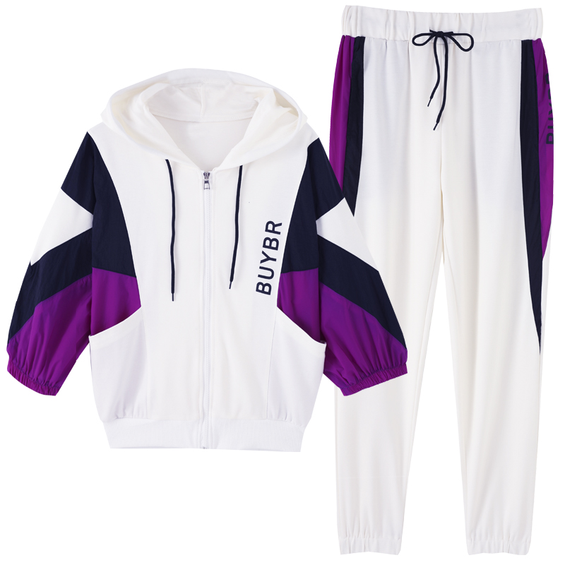 Tide brand casual sports suit female 2022 spring fashion hooded sweatshirt Western style age-reducing net red tooling two-piece set