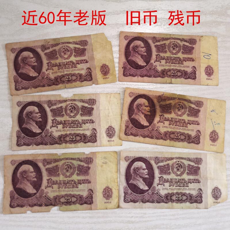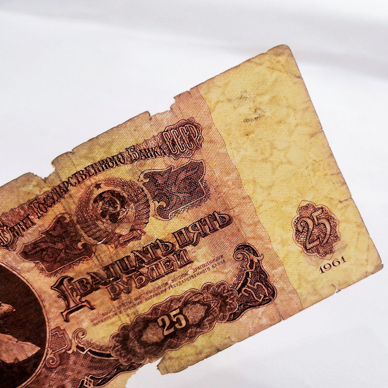 Foreign coin residual coins Soviet Union 25 rubles 1 note 1961 Edition empo 5 Star watermark Europe Missing Corner Old Coins