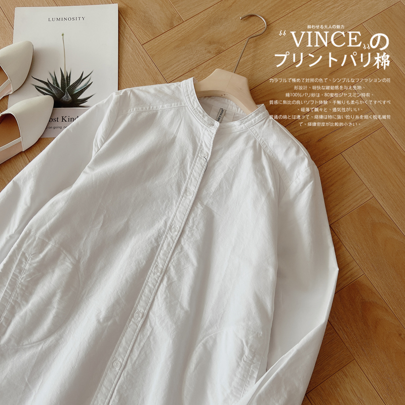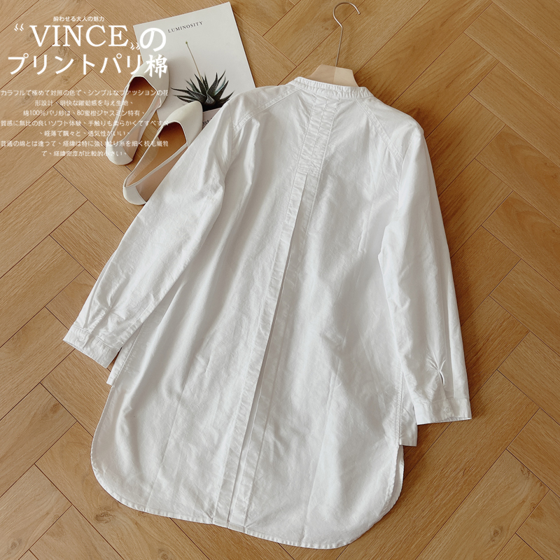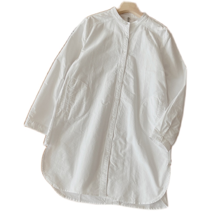 Luca Cocoa Autumn Winter New Quality Good Medium Long Version Round Collar Shirt Woman Loose Large Size Over Hip White Coat