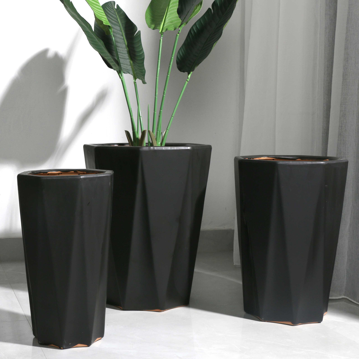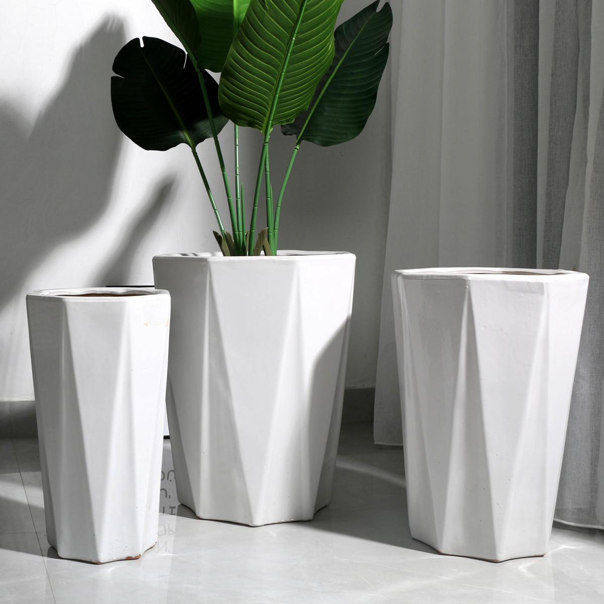 Nordic simple flower pot ceramic large clearance extra-large oversized household guest 40cm or more high-footed floor-to-ceiling high cylinder