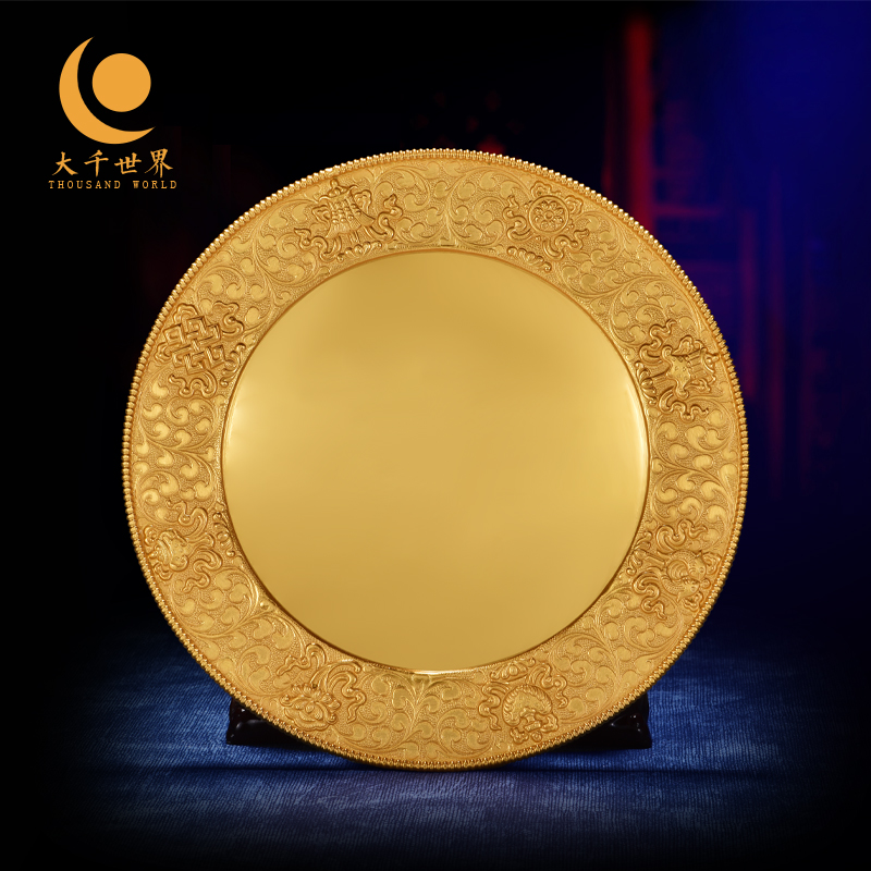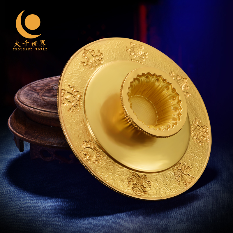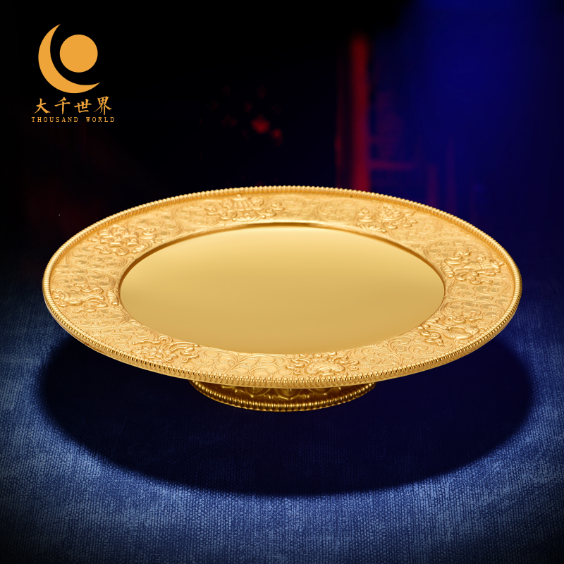 S999 pure silver eight auspicious gold plated gold plated Manza 10 cm plated 24k gold tray Manza tea