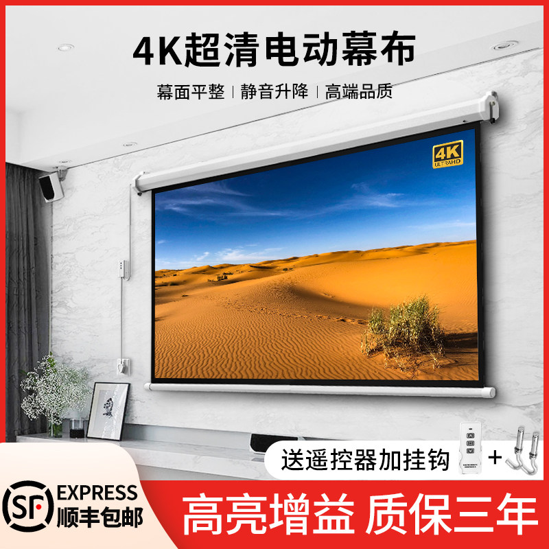 Color projection screen electric home remote control automatic lifting 84 inch 100 inch 120 inch 150 inch HD 4k anti-light wall screen bedroom home theater projection cloth projector projection screen cloth