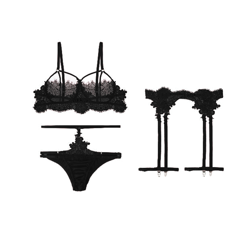 Ji Gill: lace cute bundle sexy perspective lingerie women set rabbit cross strap cosplay