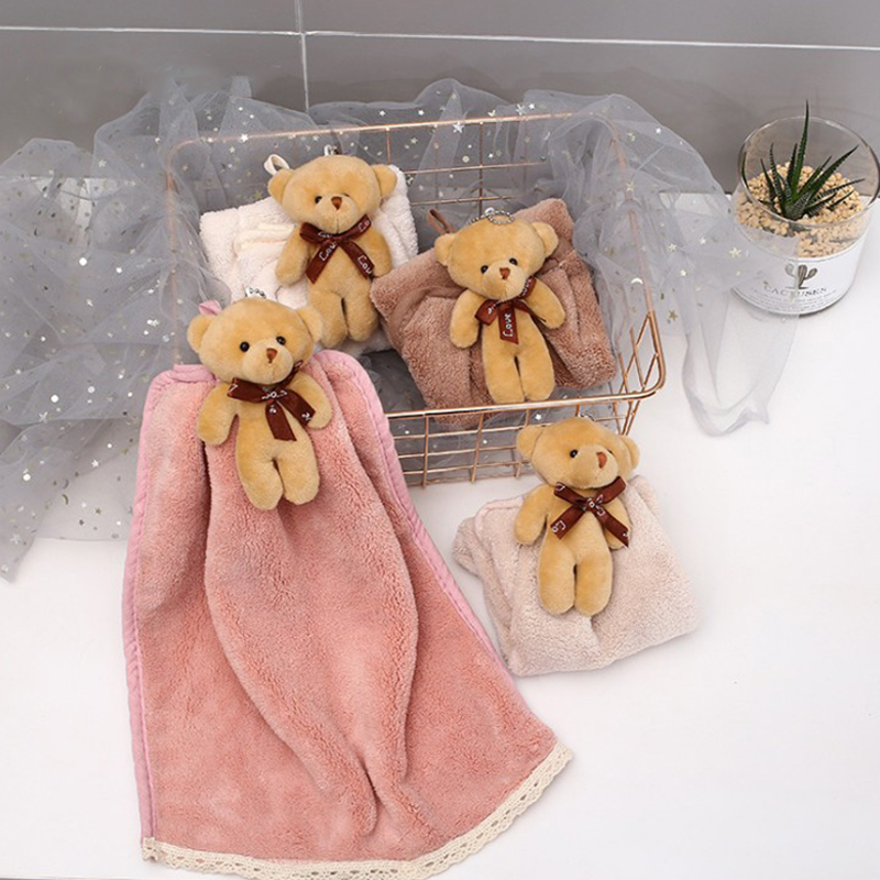 Hand towel hanging cartoon thickened animal bear children's coral velvet dishcloth does not lose hair absorbent water-drying hand towel