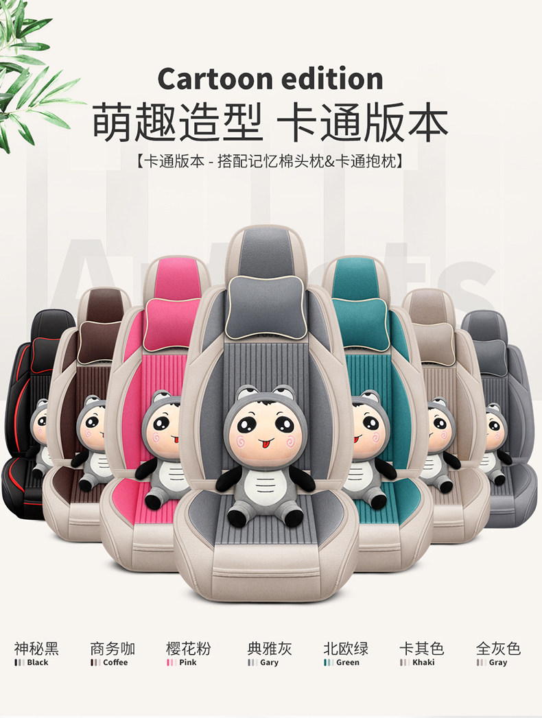 Khaki-cartoon version (a set of cushions two memory cotton headrests two cartoon waist support) Brown-Deluxe version (a set of cushions two headrests two waist support) Cherry powder-cartoon version