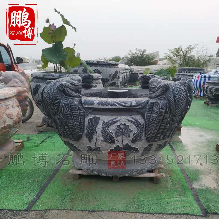 Stone carved fish tank bluestone antique stone tank flower pot outdoor fish tank villa courtyard garden stone trough decoration decoration