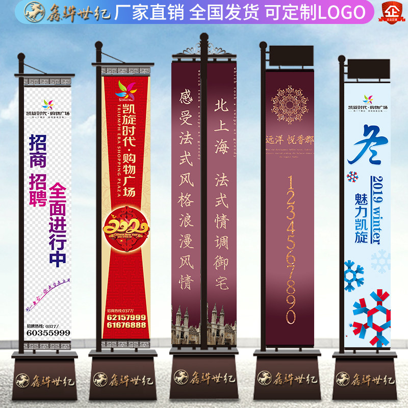 Customized 5-meter real estate real estate iron sand injection road flag double-sided European Roman knife flag iron outdoor advertising chess pole