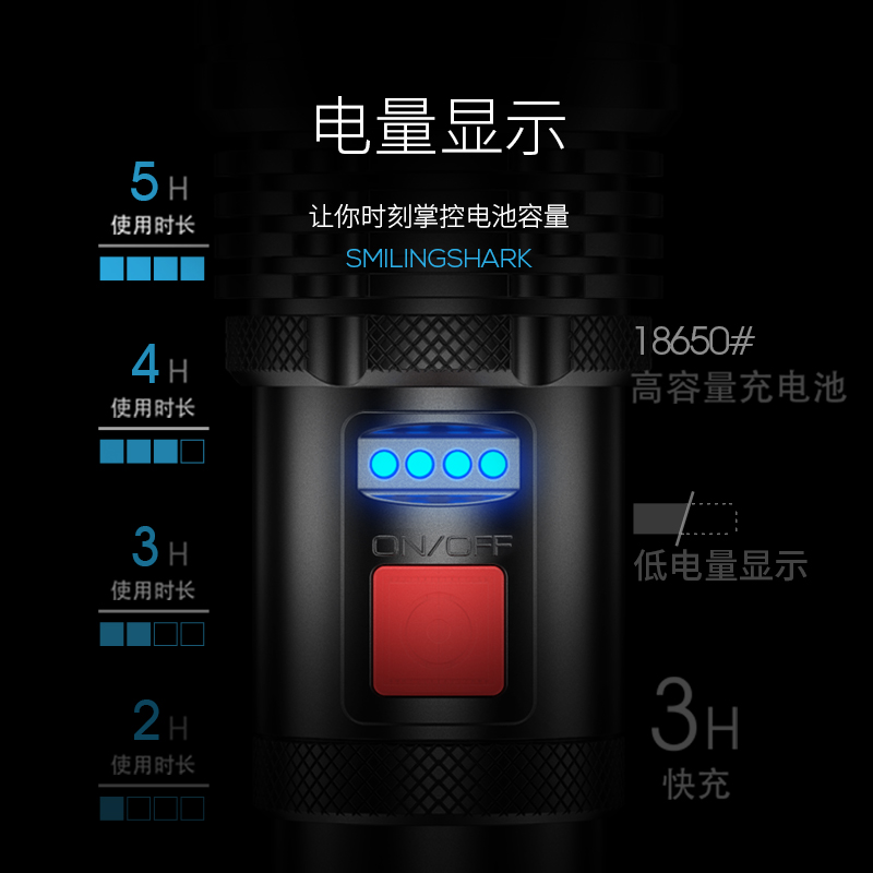 Smile Shark P70 strong light super bright zoom telephoto charging outdoor xenon led flashlight small home portable durable