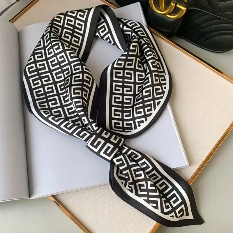 Geometric patterns small ears silk scarves women South Korean small scarves decorated strip 100 hitch with art hair band scarf tide