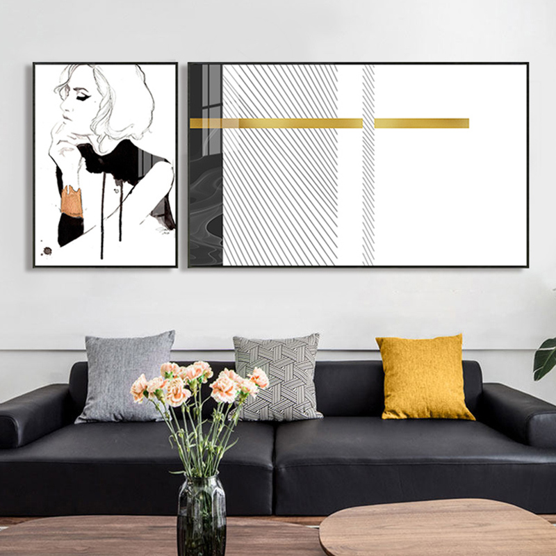 Modern Minimalist Living Room Decoration Painting Sofa Background Wall Nordic Hanging Paintings Light Extravagant Mix Creative Bedroom Mural Two Couplets-Taobao