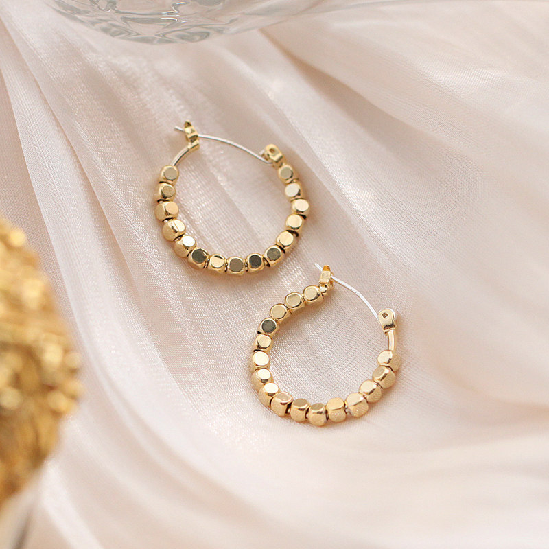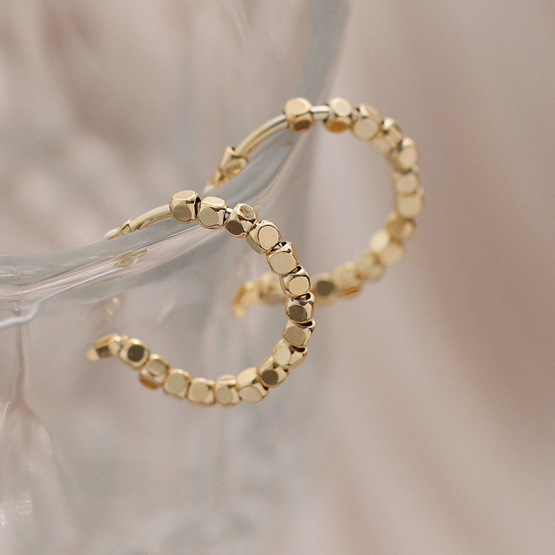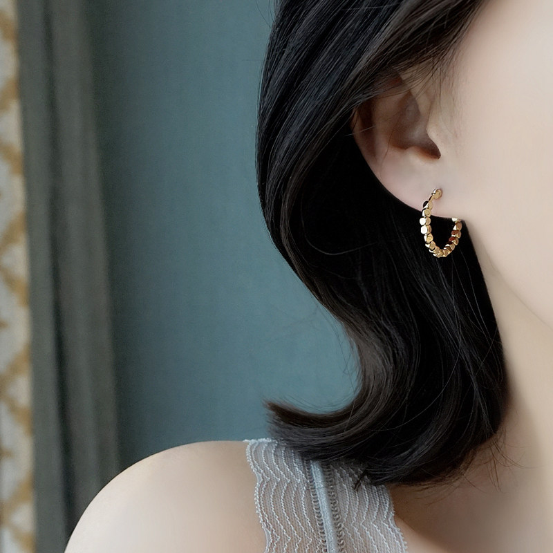 Small Z Youpin 925 silver needle baroque retro temperament C-shaped gold bean earrings earrings Korean temperament simple ear needle