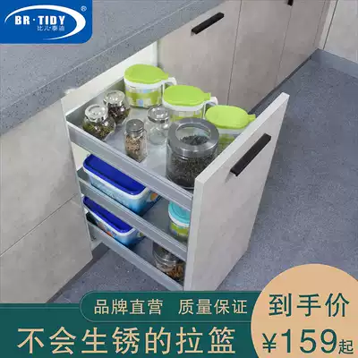 Beal Teddy drawer kitchen? Car 2 layer 3 layer pull basket space aluminum alloy seasoning shallow cabinet custom pull basket