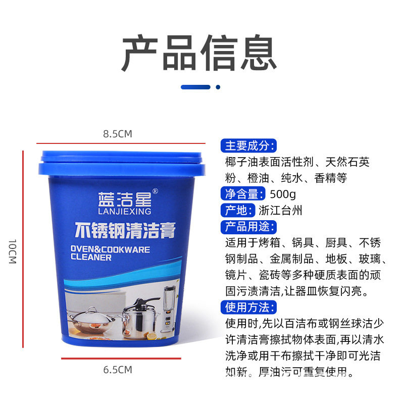 Lanjiesing stainless steel cleaner cleaning cream removes the burn marks at the bottom of the pot and black scale household kitchen multi-functional cleaning artifact