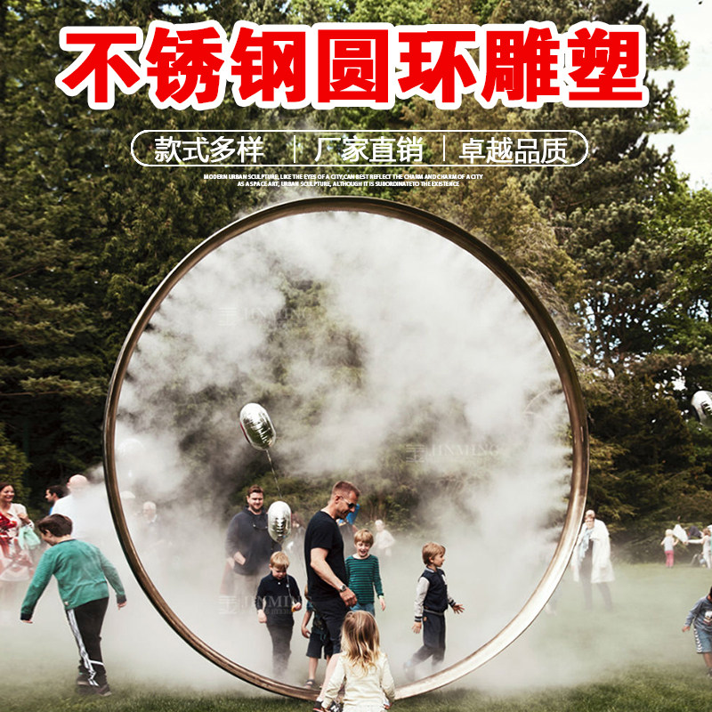 Outdoor garden stainless steel ring spray sculpture custom mirror luminous moon abstract hollow round large ornament