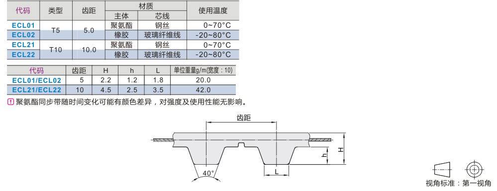 Trapezoidal tooth synchronous belt T5 T10 T10 ECL01-T5 ECL21-T10 ECL21-T10 ECL22-T10 ECL22-T10 ECL22-T10