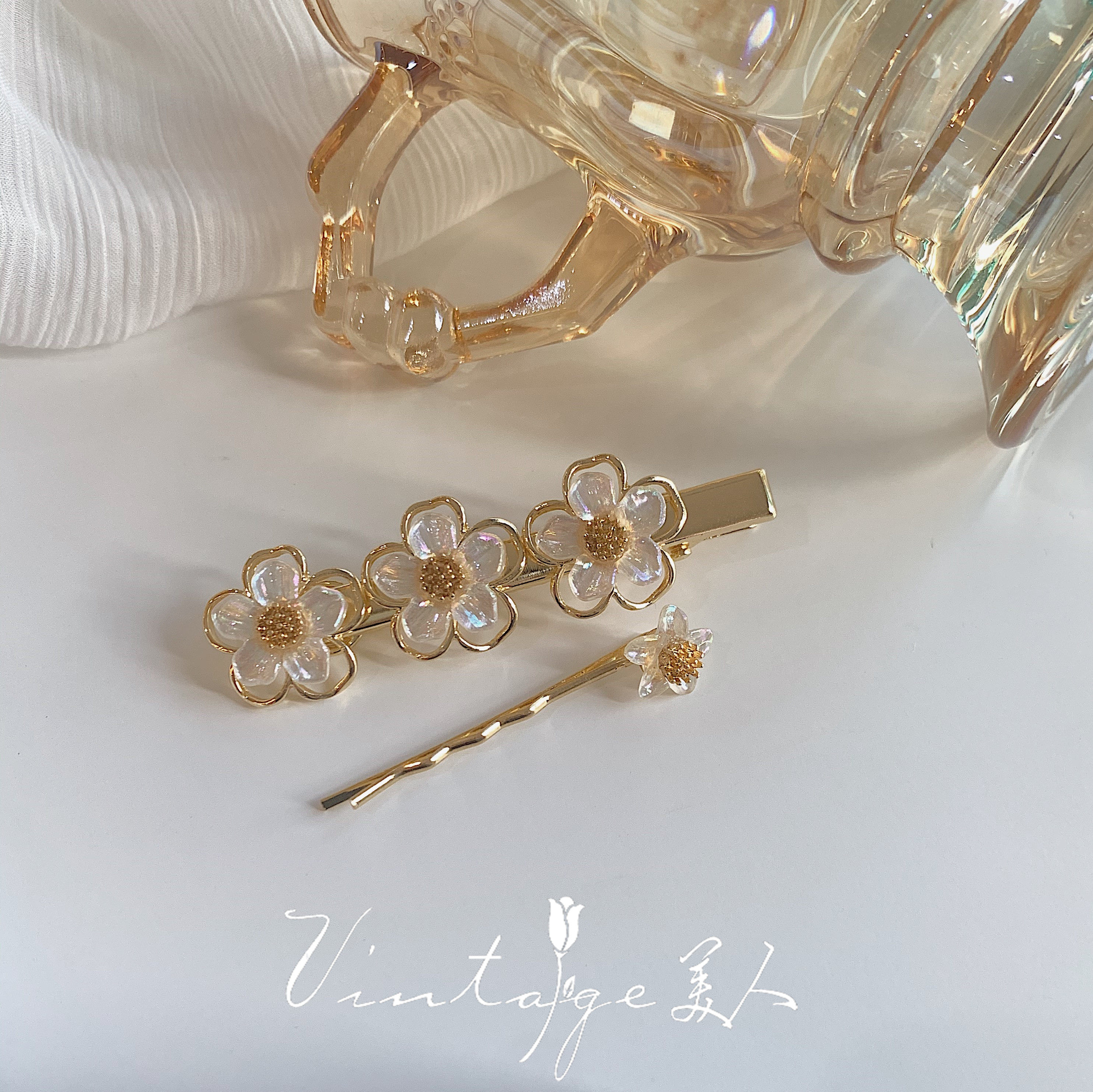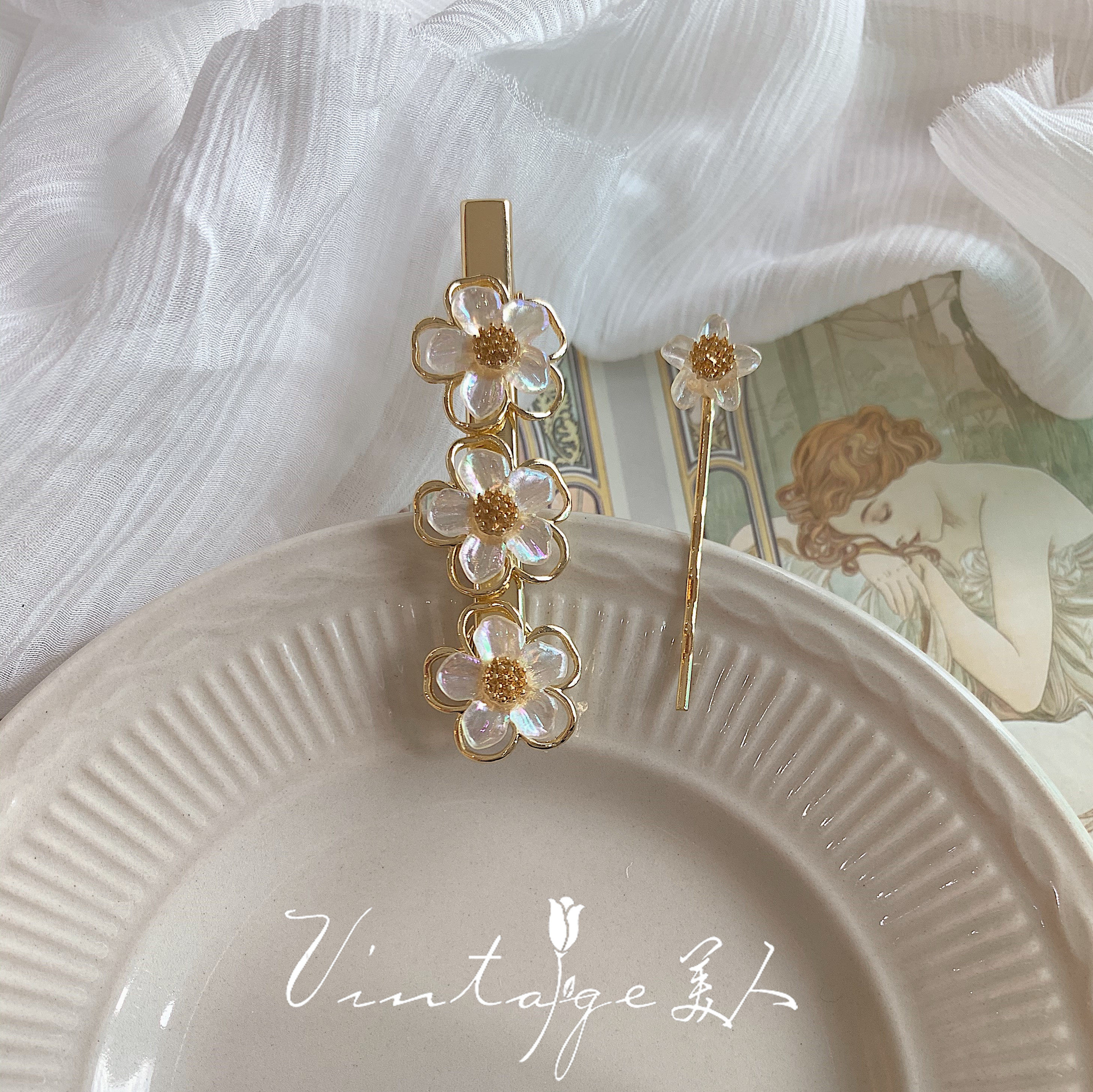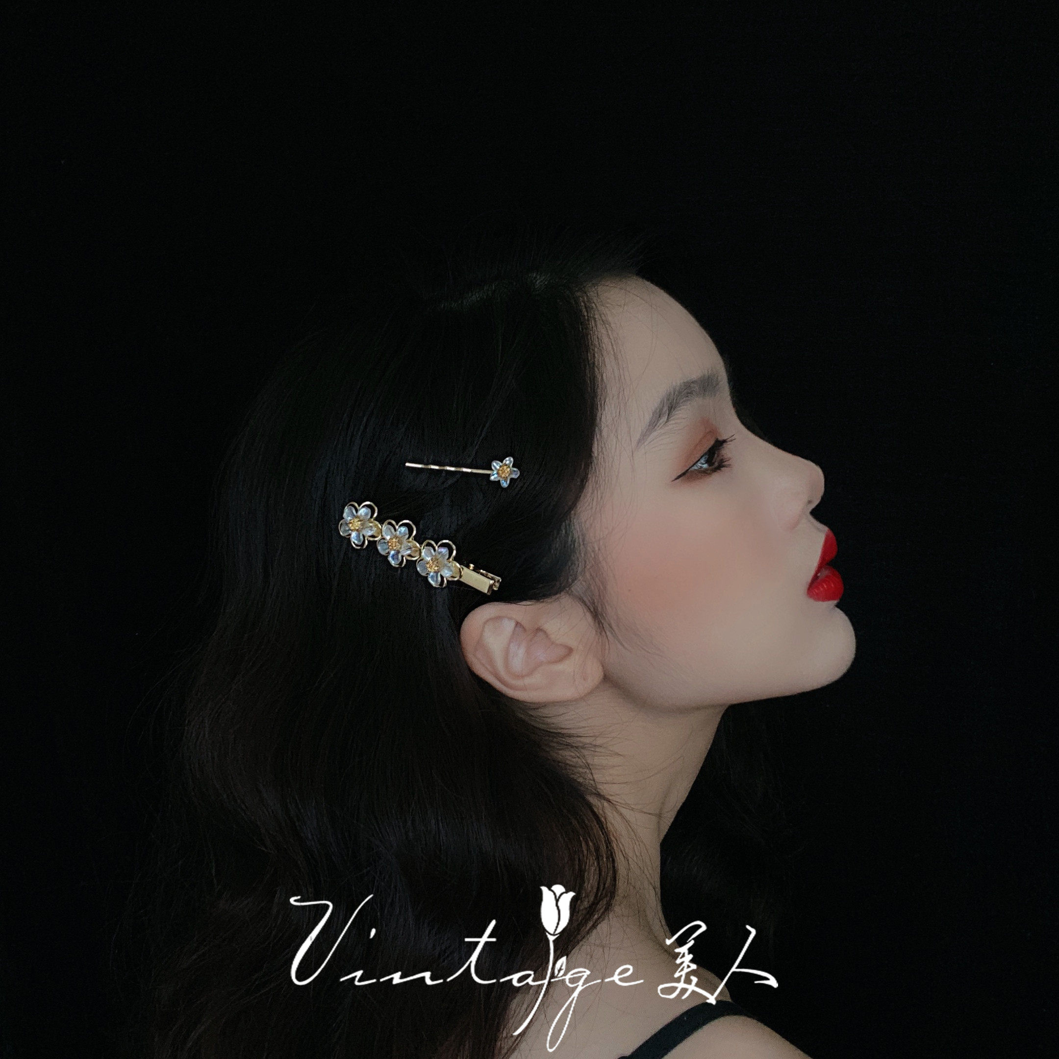 "Running to Paris at Night" French retro court vintage elegant girl flower clip hairpin combination