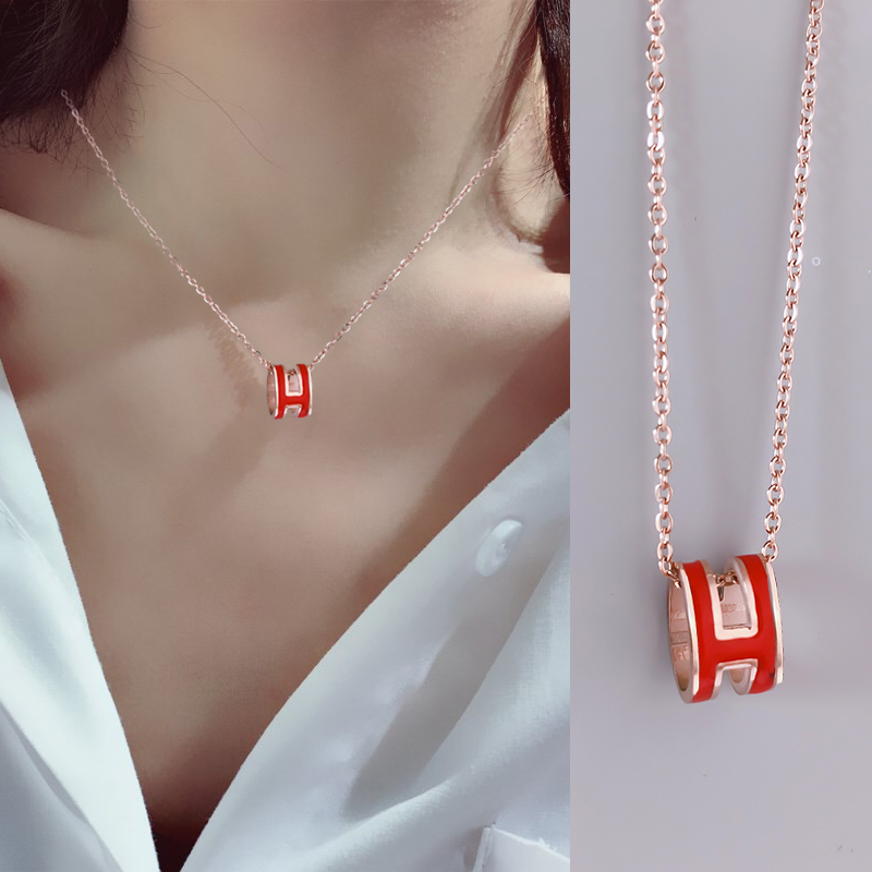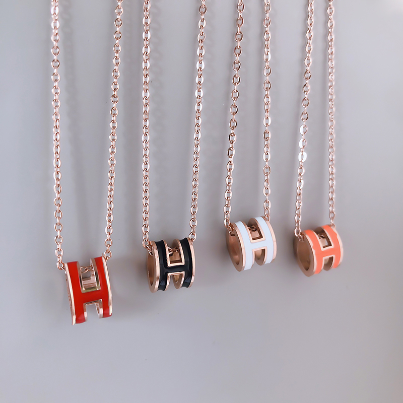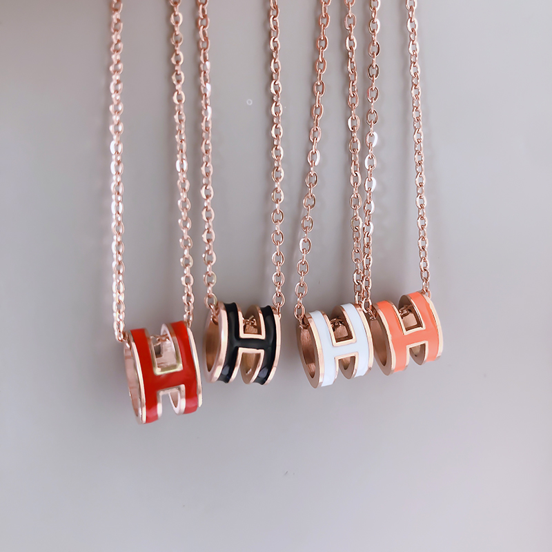 Letter Necklace Woman Titanium Steel Lock Bone Chain Temperament 100 Hitch Necklace Advanced Sensation Net Red Rose Gold Without Fading Neck Necklace Tide