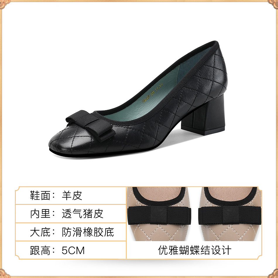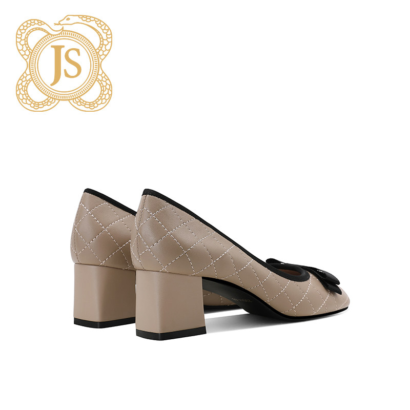 100 Hitch Small Scent Wind Single Shoes Woman Apricot Pink Plaid Ladies Retro Thick Heel Autumn Shoes New Ladyshoe Woman 2020 new