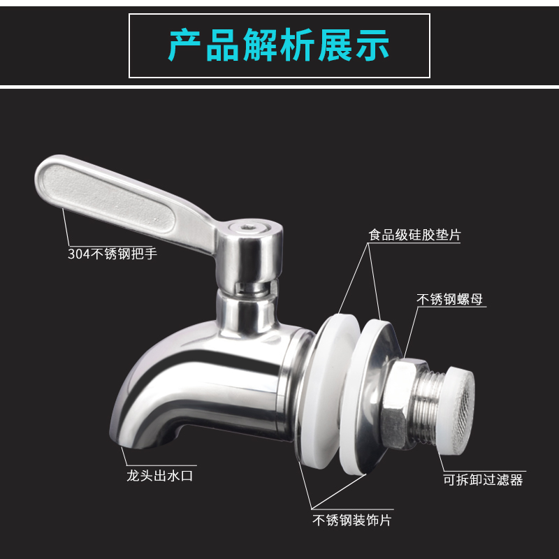 Wine tank Wine barrel special faucet Glass bubble wine bottle Ceramic bubble wine jar Wine jar 304 stainless steel switch valve