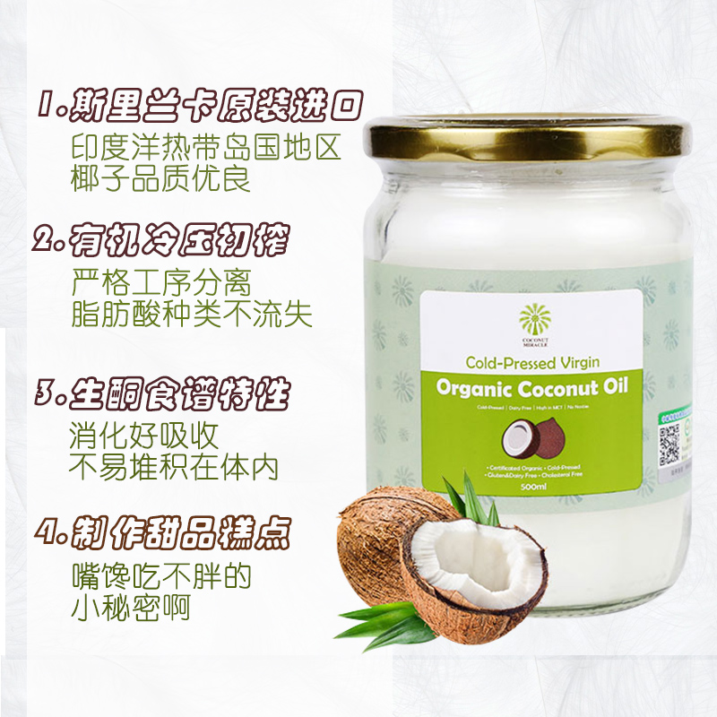 Imported organic coconut oil 500ml hair care coconut oil ketogenic 0 carbon water-cooled Virgin skin care remover baking