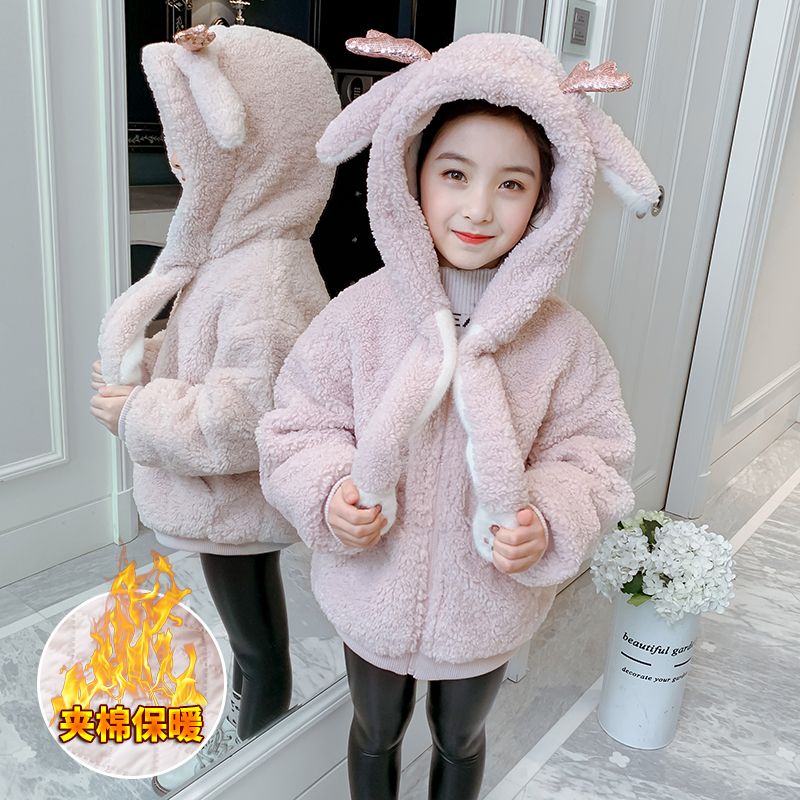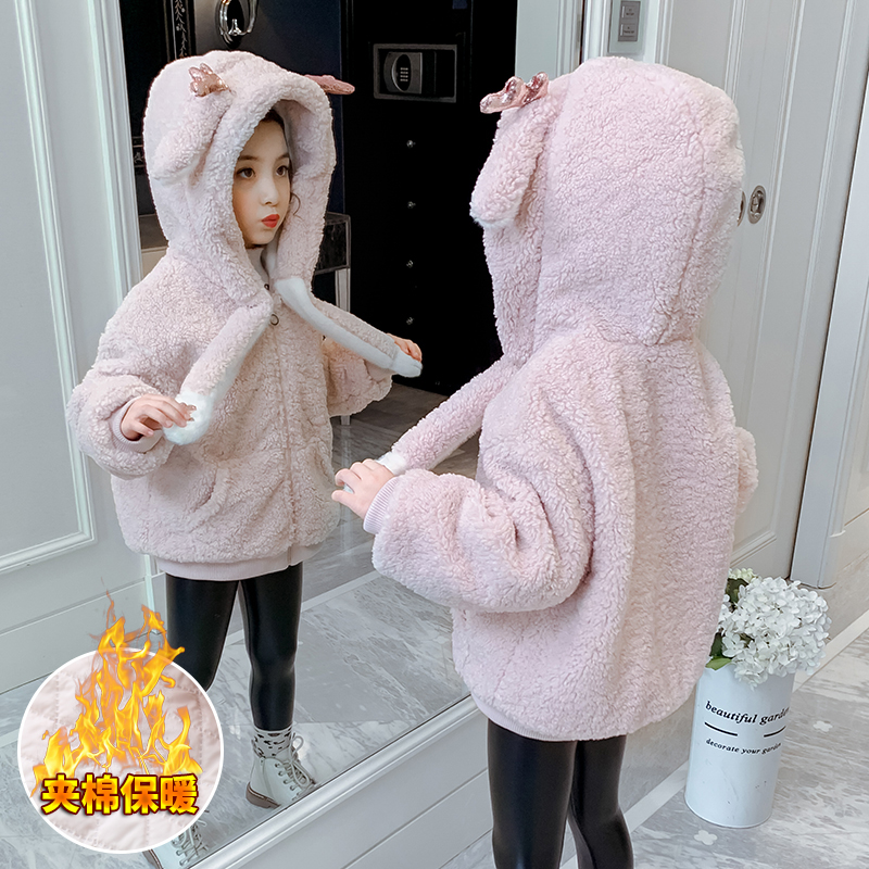 Female Baby Cute Ear Motion Coat Winter Dress Girl Thickening Clip Cotton Wool Sweater Special Meng Child Clothing