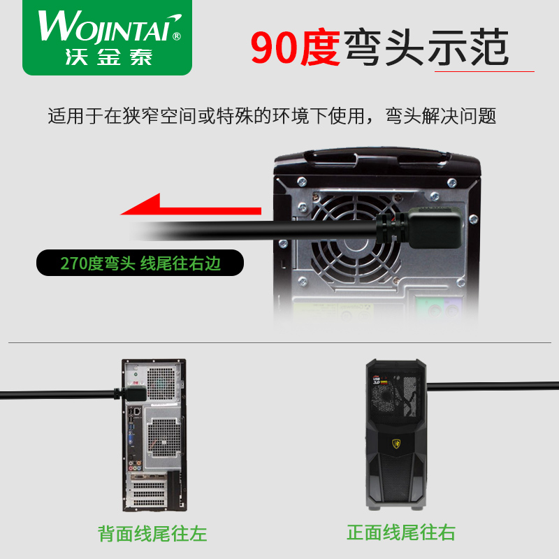 English Gauge 90 Degrees Elbow Power Cord Computer Case Elbow Power Cord Three Inserts of National Mark Character Tail Bend