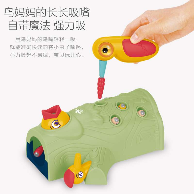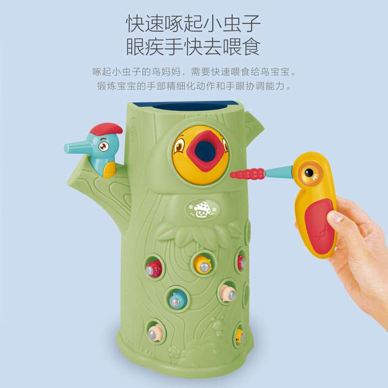 Children and girls boys baby puzzle 1-2 years old and a half 3 woodpeckers eat catch insects fishing toys intelligence brain