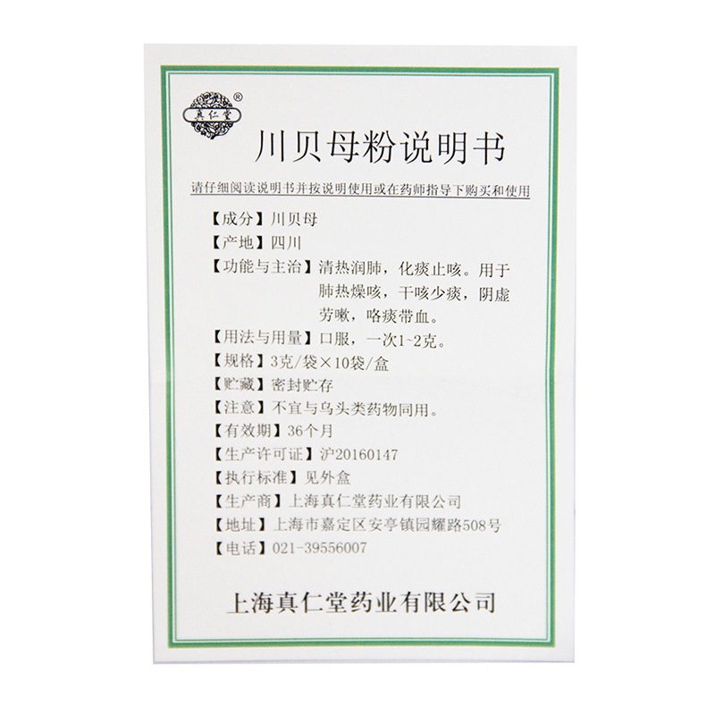 Shanghai Zhenrentang Chuanbei Powder Chuanbei Powder 3g *10 Bags Flagship Store Chinese Medicine Can Make Loquat Cream Packets