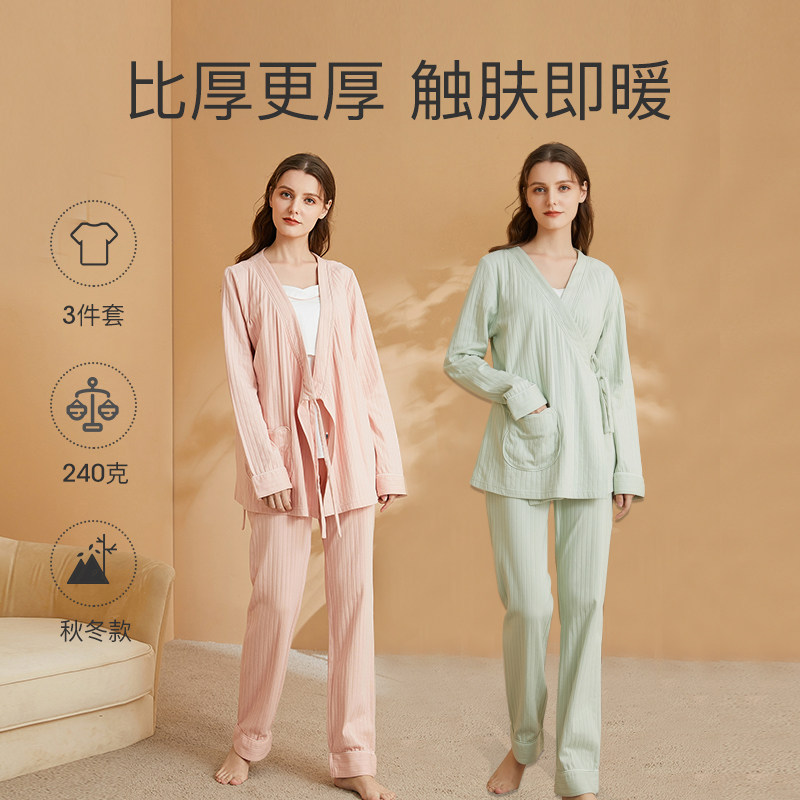 Jing Qiuyue Subsuit Spring and Autumn Period Postnatal Pure Cotton Lactation March 4 Pregnant Woman Pyjamas maternal breast-feeding period Home Feminists