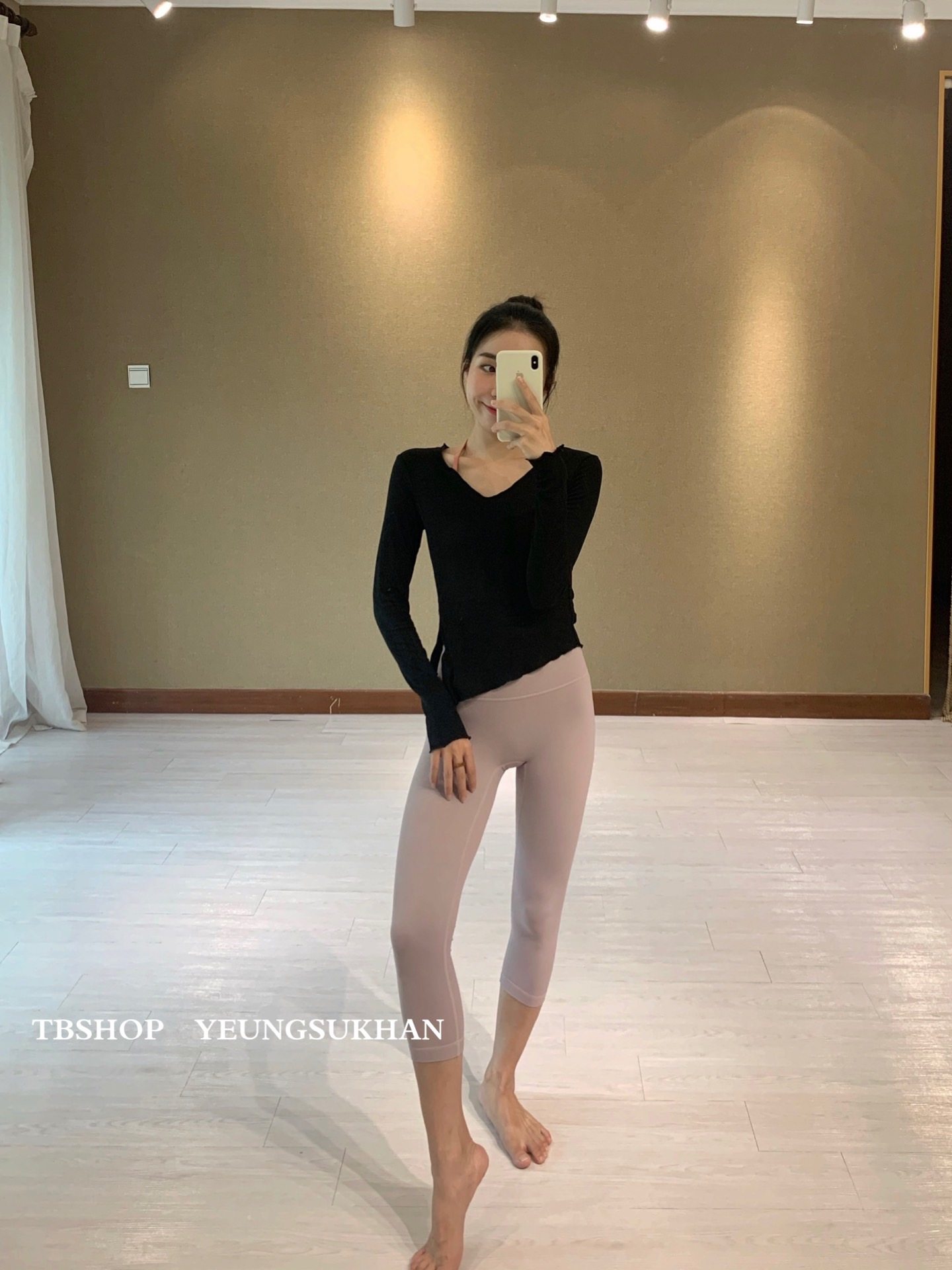 YEUNGSUKHAN one-piece seven-eighth pants * no Y line no side stitching high waist yoga naked tights