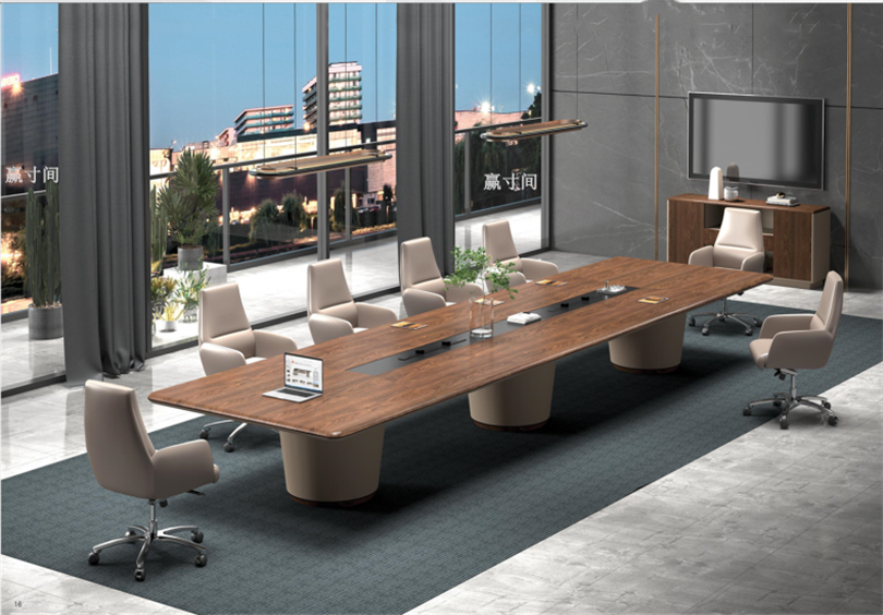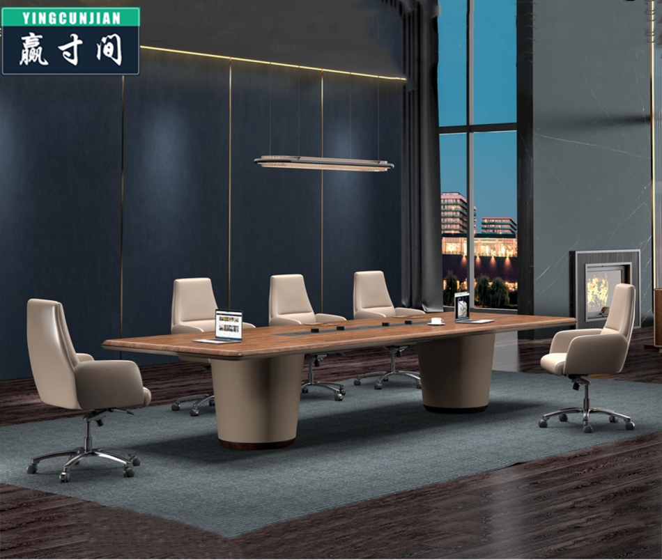 Large Walnut Wood Meeting Table Paint Solid Wood Strip Desk Light Luxury Fashion Business Hospitality Negotiation Table 4 m