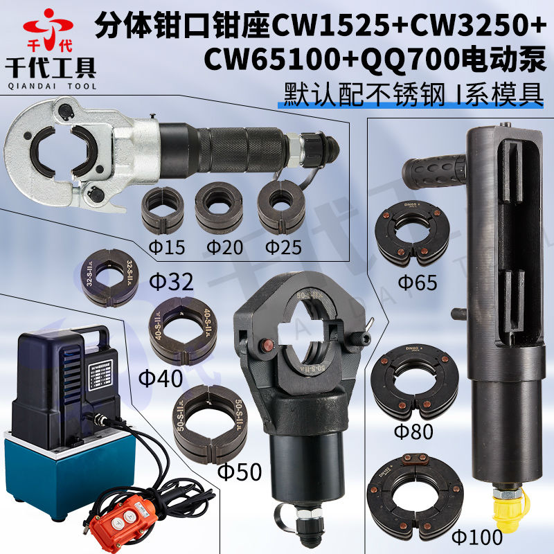15-25 Pressure Tube Pliers + 180 Hand Pump 15-50 Pressure Tube Pliers + 700 Hand Pump (4 m Tube Strap Table) 15-50 Pressure Tube Pliers + Mini Electric Pump 15-100 Pressure Tube Pliers + 700 Hand Pump (4 m Tube With Table) 15-100 Pressure Tube Pliers + Mini Electric Pump 15-25 Pressure Tube Pliers (without Pump) 32-50 Pressure Tube Pliers (Without Pump) 65-100 Pressure Tube Pliers (Without Pump) 15-25 Integrated Pressure Tube Pliers 15-25 Rechargeable Tube Clamps 15-25 Small ForcePs (without Jaws) 32-50 large jaws (without jaws) 65-100 ring clamps (without jaws) Single pair of small jaws (please note model 15-25) Single pair of large jaws (please note model 32-50) 65 ring mold jaws 80 ring mold jaws 100 ring mold jaws Ring mold clamp slide 700 hand pump (4 m tube with meter) Mini portable electric pump