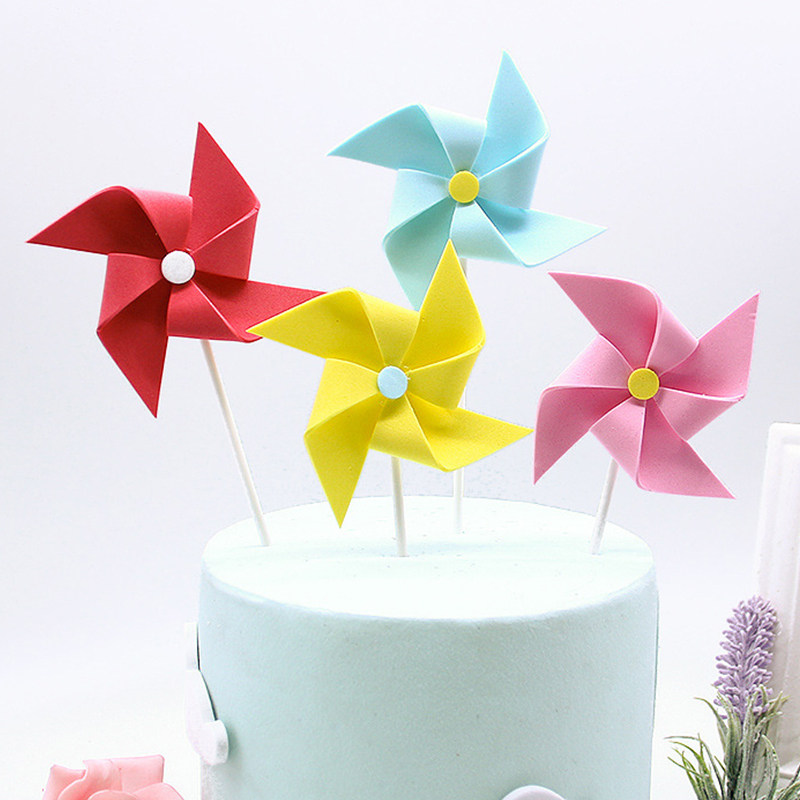 Baking cake decoration EVA multi-layer three-dimensional color windmill birthday scene cake decoration card colorful plug-in