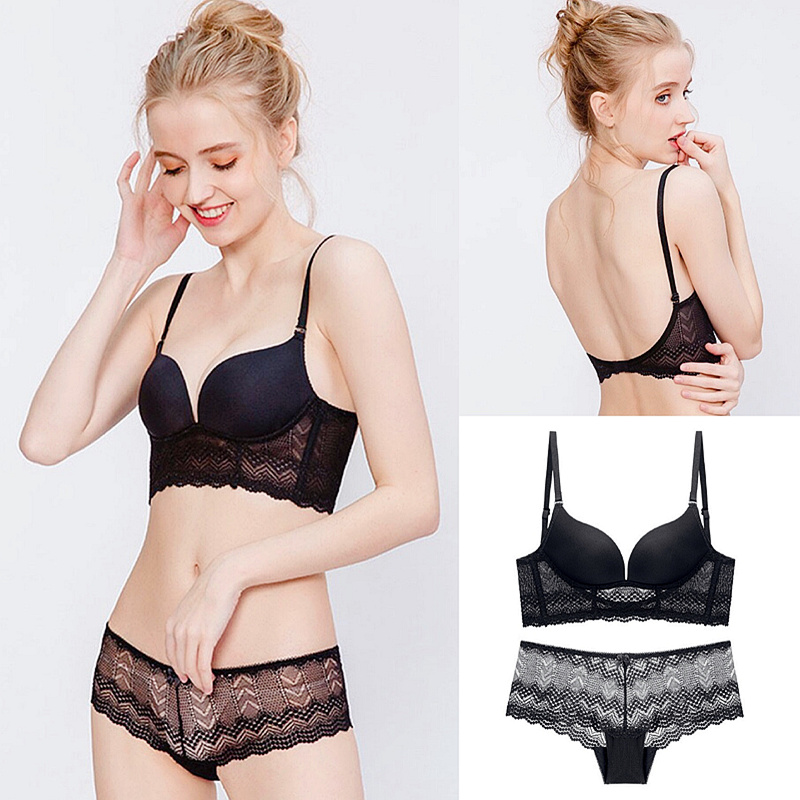 Large dew back U shaped back bra gathers up to thicken small breasts A cup sexy lingerie woman no steel ring multiple wear-Taobao