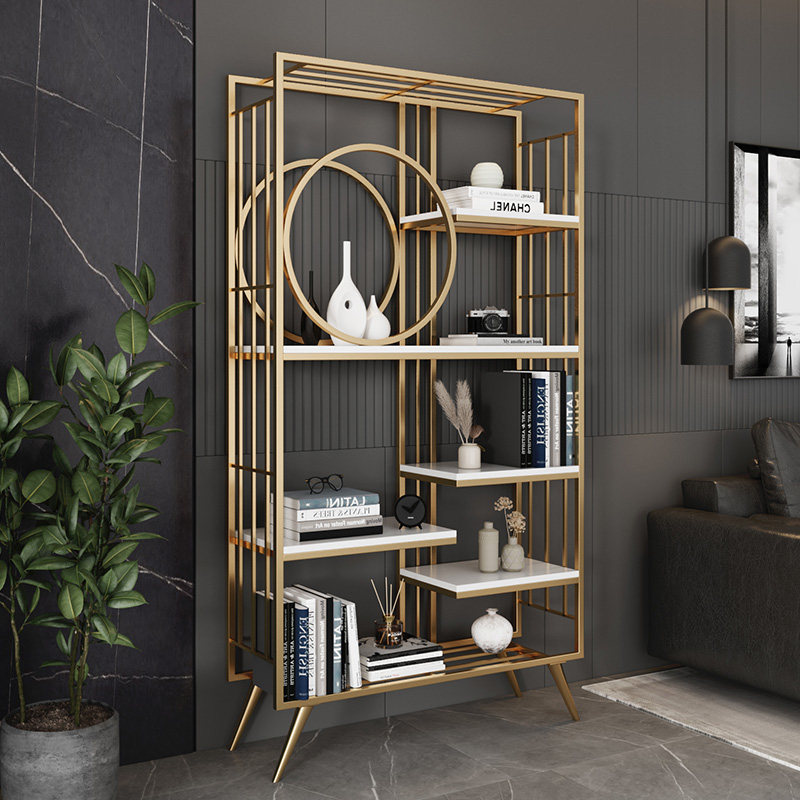 Light Extravagant Golden Iron Art Floor Bookshelf Office Metal Leaning Against Wall Shelve Room Sofa Side Bookcase Deco