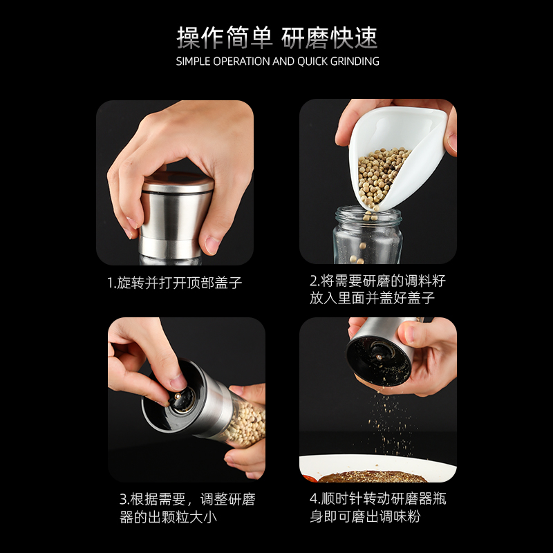 304 stainless steel grinder household manual grinding pepper powder machine sea salt seasoning bottle black pepper grinder
