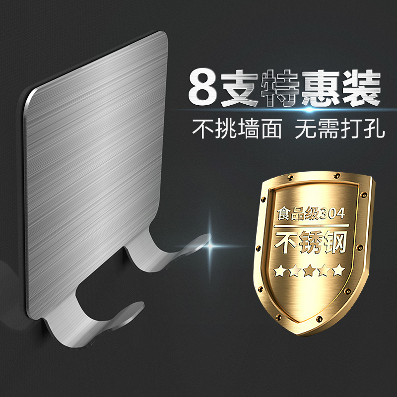 Stainless steel hook powerful adhesive kitchen bathroom door rear adhesive hook wall-mounted load-bearing wall Wall Makeup room No-mark-free nail